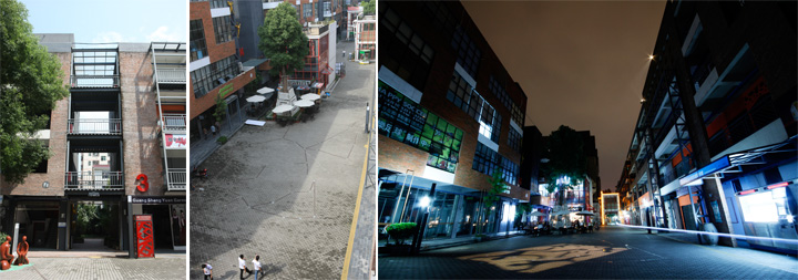 裸露著灰色槽鋼和紅磚墻的10棟舊廠房,338米主街錯落著白色的LOFT、O’Minishop品牌展示店、集裝箱店,以及給人意外情緒的雕塑和公共設施。后工業(yè)時代氣息中,150多個創(chuàng)意設計企業(yè)、團隊和個人工作室聚集于此,成為園區(qū)創(chuàng)意力量的核心。